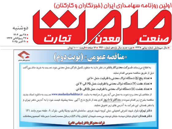 اردشیر سعدمحمدی، مدیرعامل شرکت سرمایهگذاری توسعه معادن و فلزات، از پیشرفت چشمگیر عملیات اکتشاف و توسعه در معدن مس جانجا…